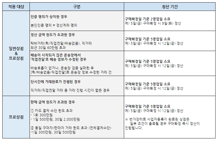 번개장터 예외적인 정산 기간