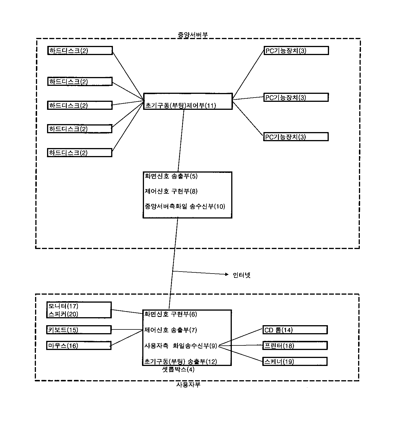 중앙집중 시스템이라고 PC한대 두고 모니터와 셋탑으로만 연결해서 사용하는 방식입니다.