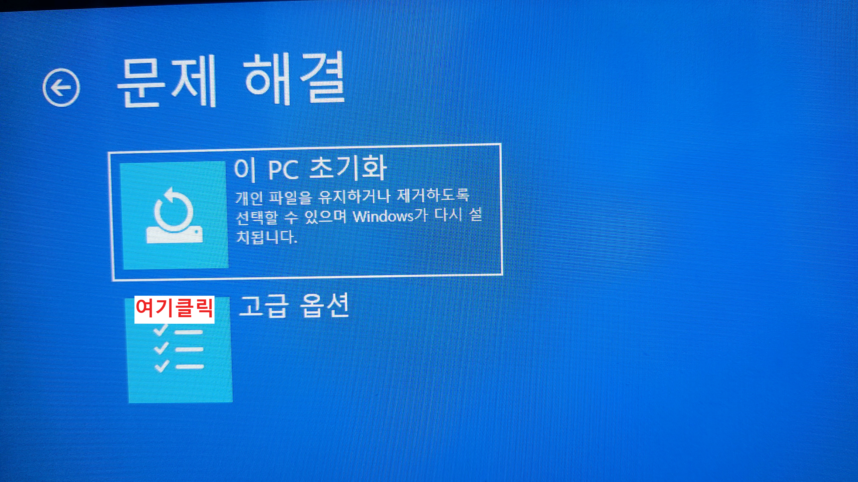 파워를 꾸욱하고 누르고 껴고를 3번 정도 반복하면 아래와 같은 화면을 만날수 있다.
